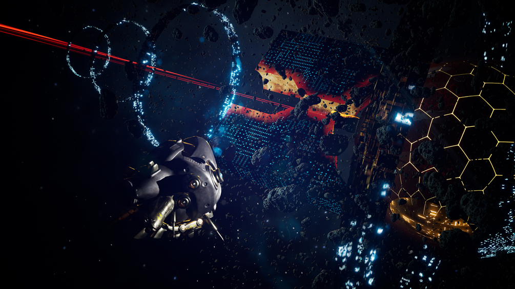 Space Scene in Unreal Engine with a Sun Harvester Mega Structure and Space Ship to Fly
