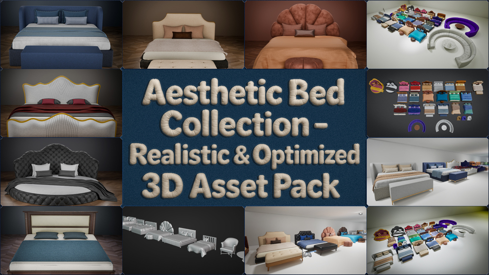 Aesthetic Bed Collection is a high-quality, modular furniture pack designed for realistic interior scenes, cinematics, and real-time environments. The collection focuses on clean design, material fidelity, and flexibility, allowing you to quickly build stylish bedroom setups or create your own custom furniture variations.